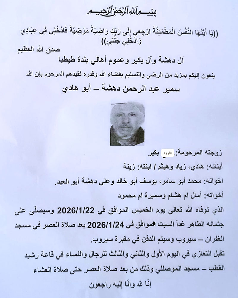 سمير عبد الرحمن دهشة (أبو هادي) في ذمة الله