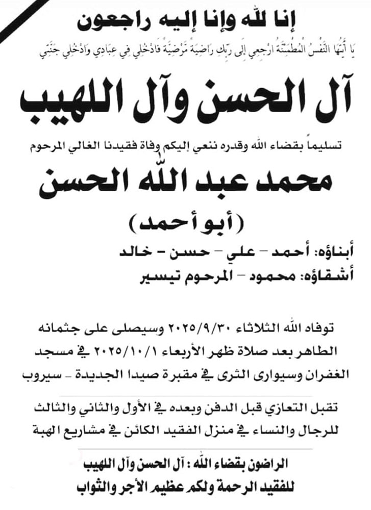 محمد عبد الله الحسن (أبو أحمد) في ذمة الله