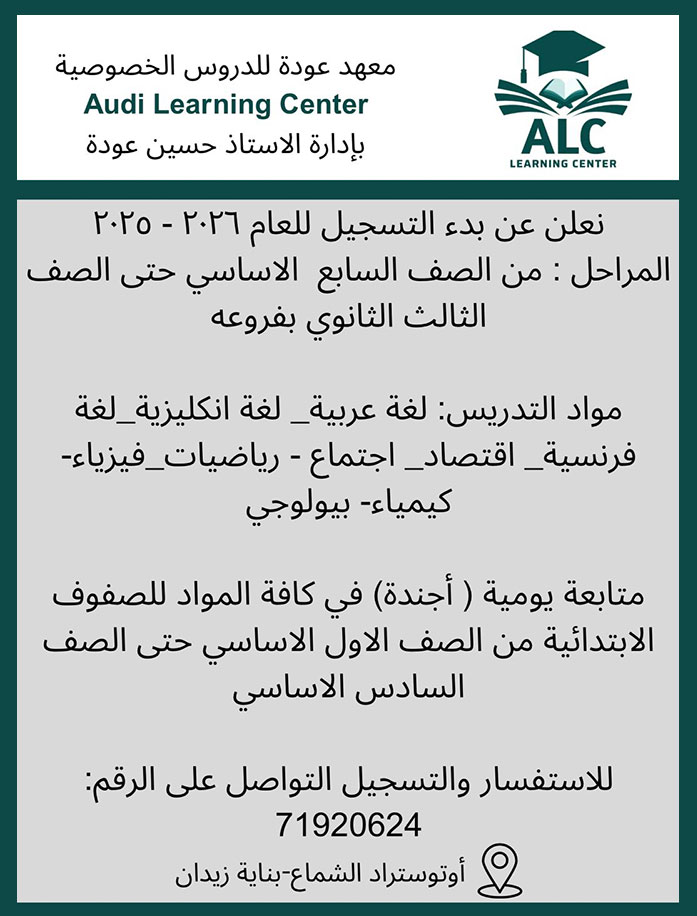 معهد عودة للدروس الخصوصية يعلن عن بدء التسجيل للعام 2025-2026