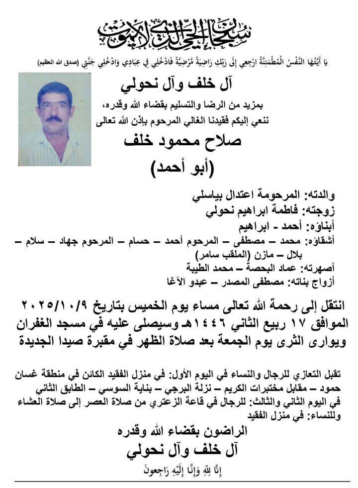صلاح محمود خلف (أبو أحمد) في ذمة الله