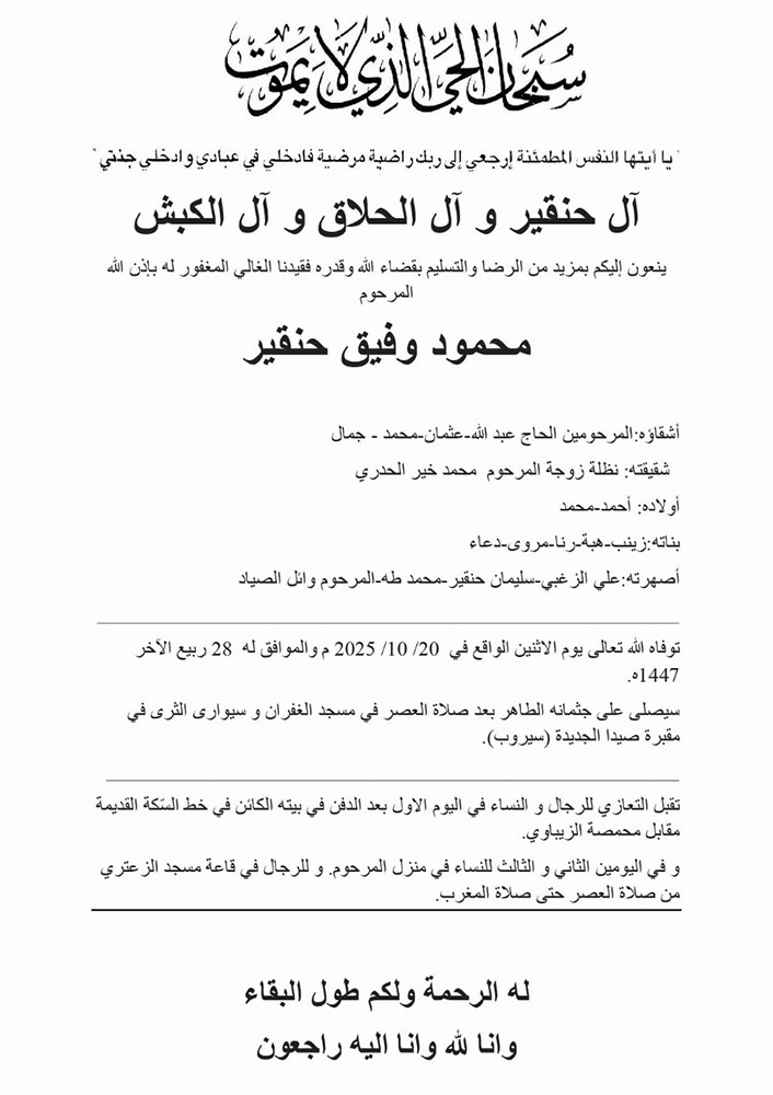- الإثنين 20 تشرين أول 2025 - [ عدد المشاهدة: 359 ]