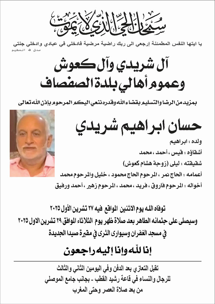 - الإثنين 27 تشرين أول 2025 - [ عدد المشاهدة: 477 ]