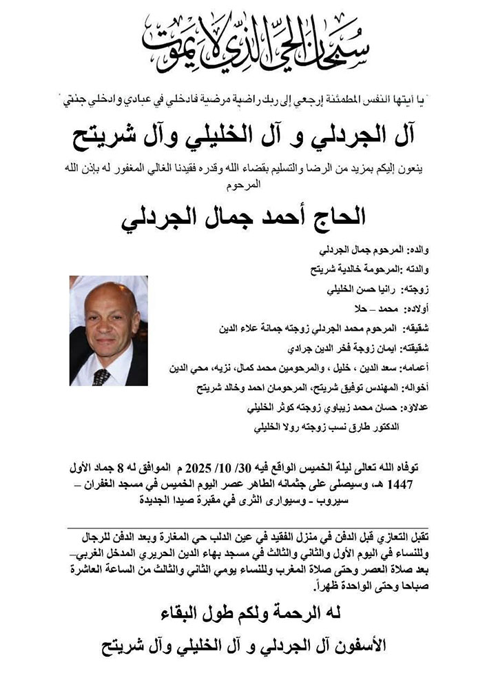 الحاج أحمد جمال الجردلي في ذمة الله