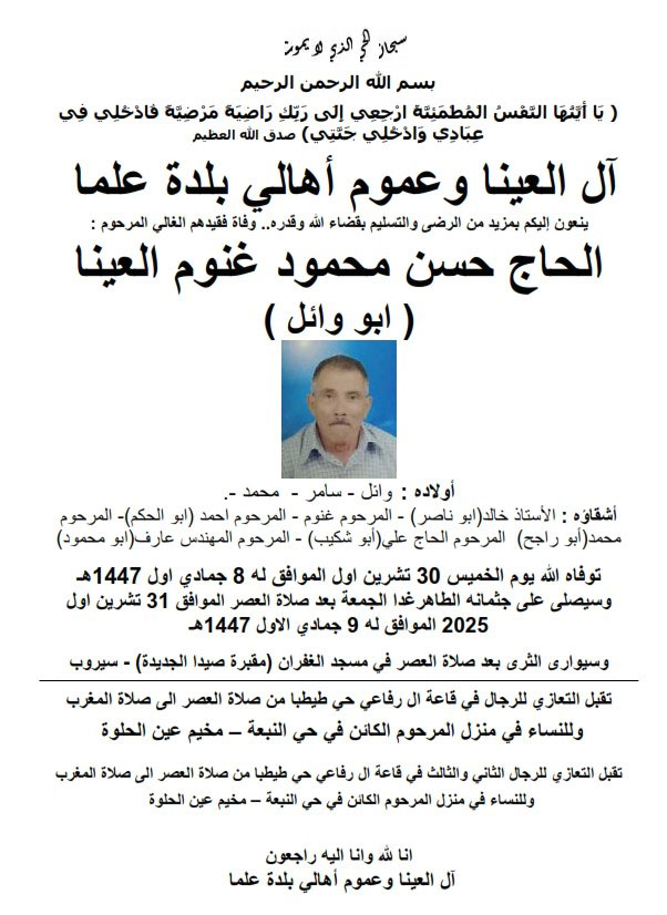 الحاج حسن محمود غنوم العينا (أبو وائل) في ذمة الله