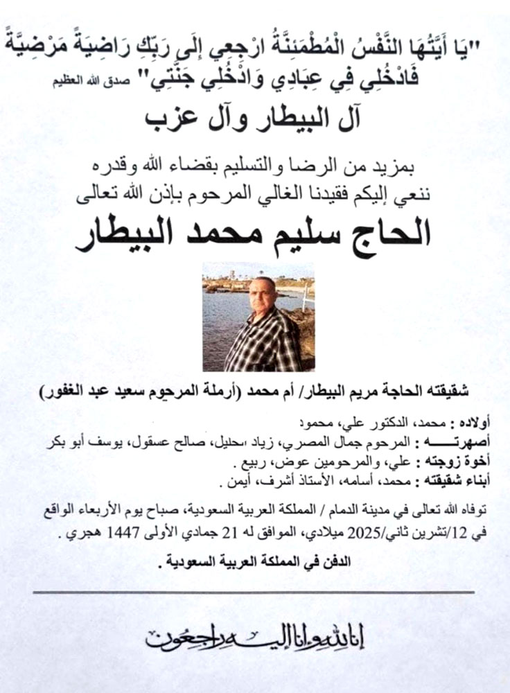 الحاجة سعاد محمد الحريري (أم ديب - أرملة حسن الغزاوي) في ذمة الله