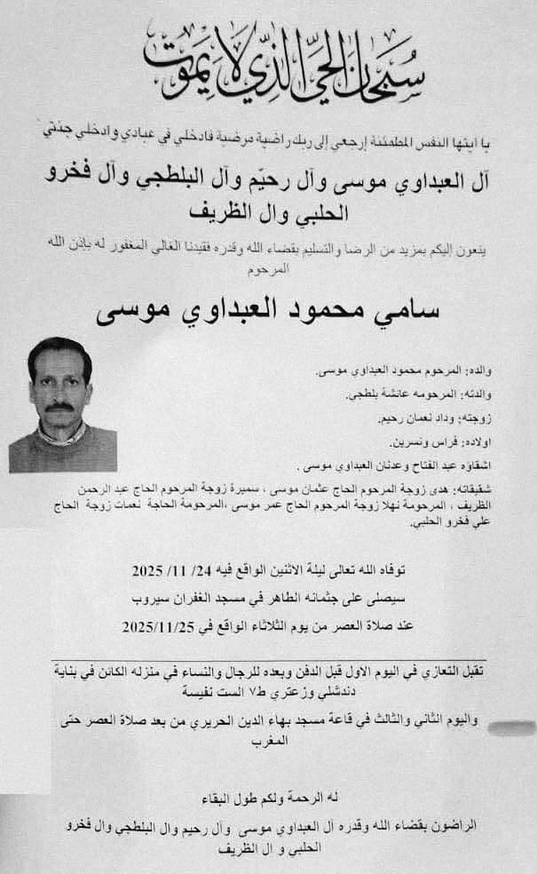 سامي محمود العبداوي موسى في ذمة الله