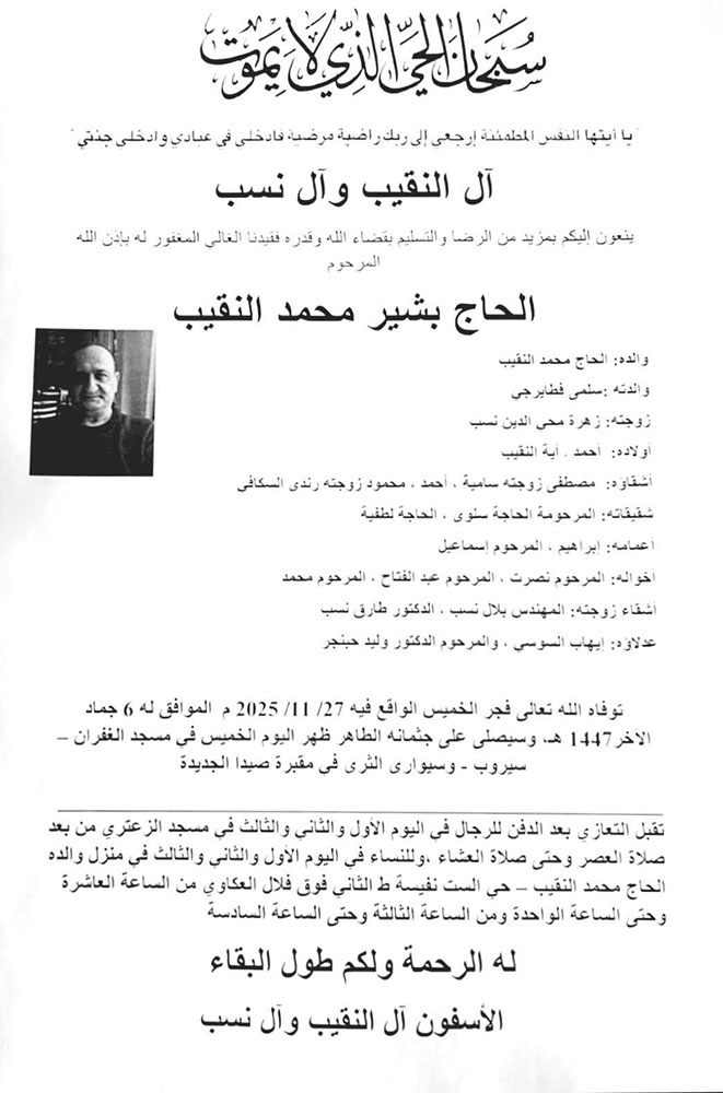 - الخميس 27 تشرين ثاني 2025 - [ عدد المشاهدة: 228 ]