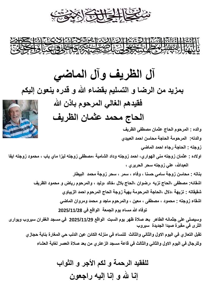 المربي الحاج عز الدين الزعتري (زوجته المربية هلا كاعين) في ذمة الله