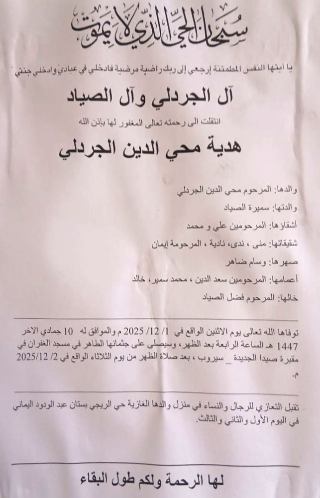 وفيات صيدا والجوار