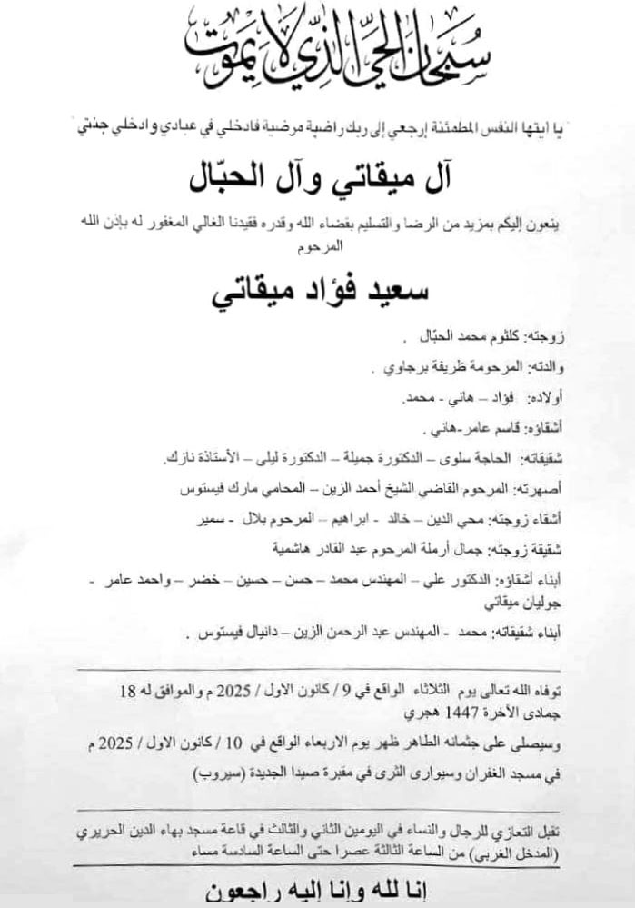 الشاب سعد الدين أحمد العقاد في ذمة الله