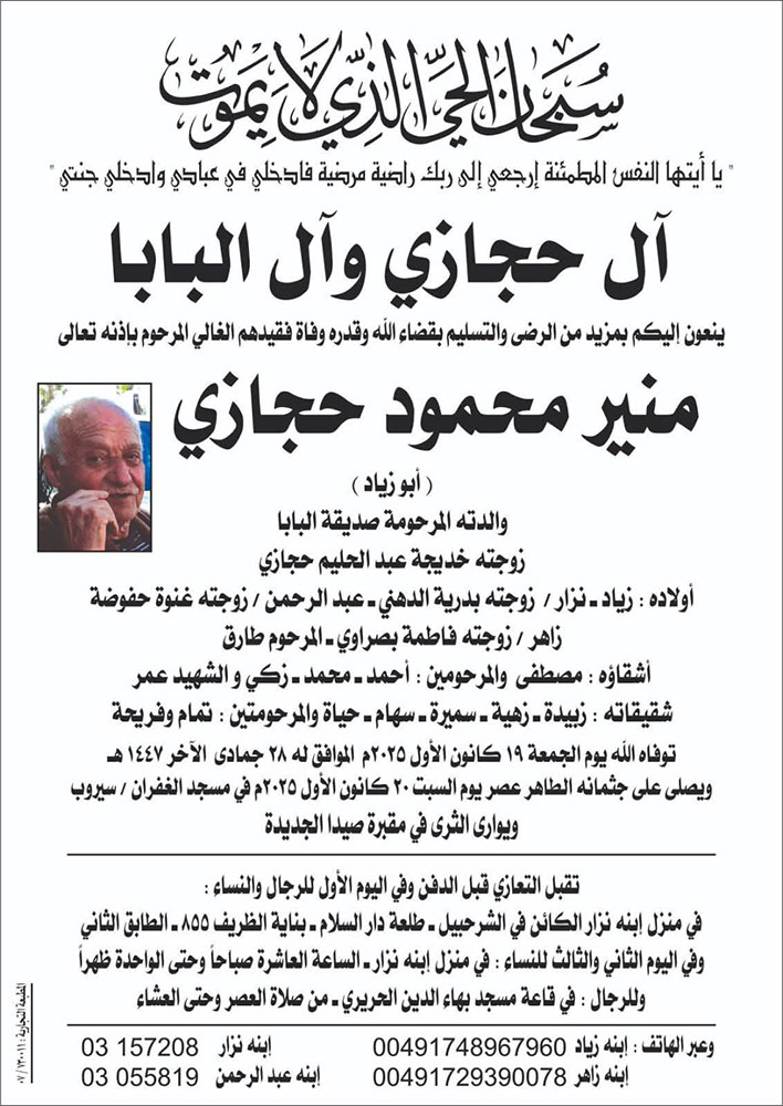 منير محمود حجازي (أبو زياد) في ذمة الله
