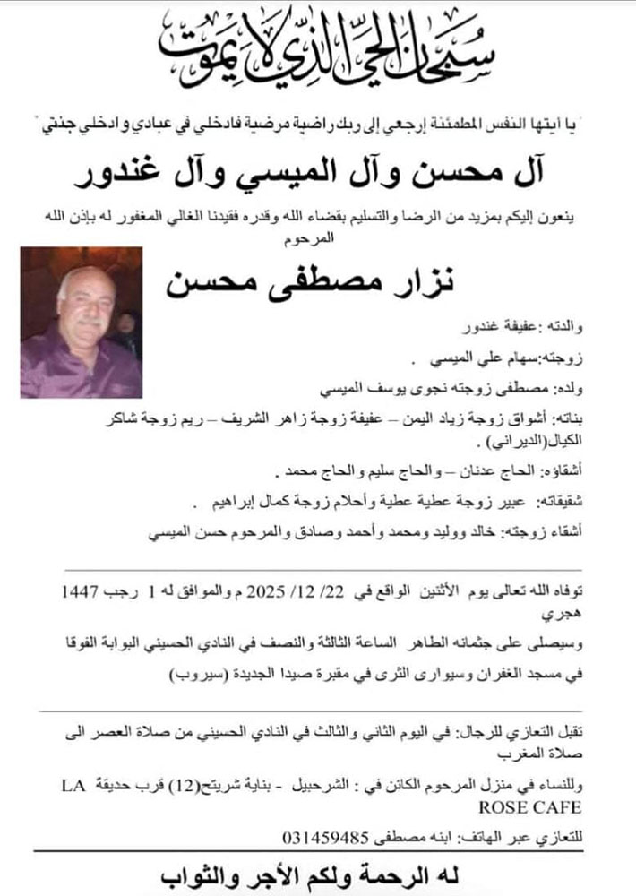 - الإثنين 22 كانون أول 2025 - [ عدد المشاهدة: 244 ]