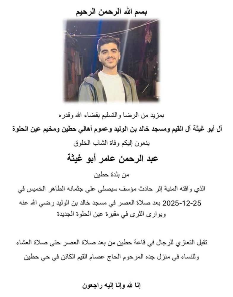 الشاب عبد الرحمن عامر أبو غيثة في ذمة الله