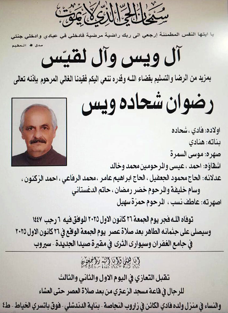 - الجمعة 26 كانون أول 2025 - [ عدد المشاهدة: 235 ]