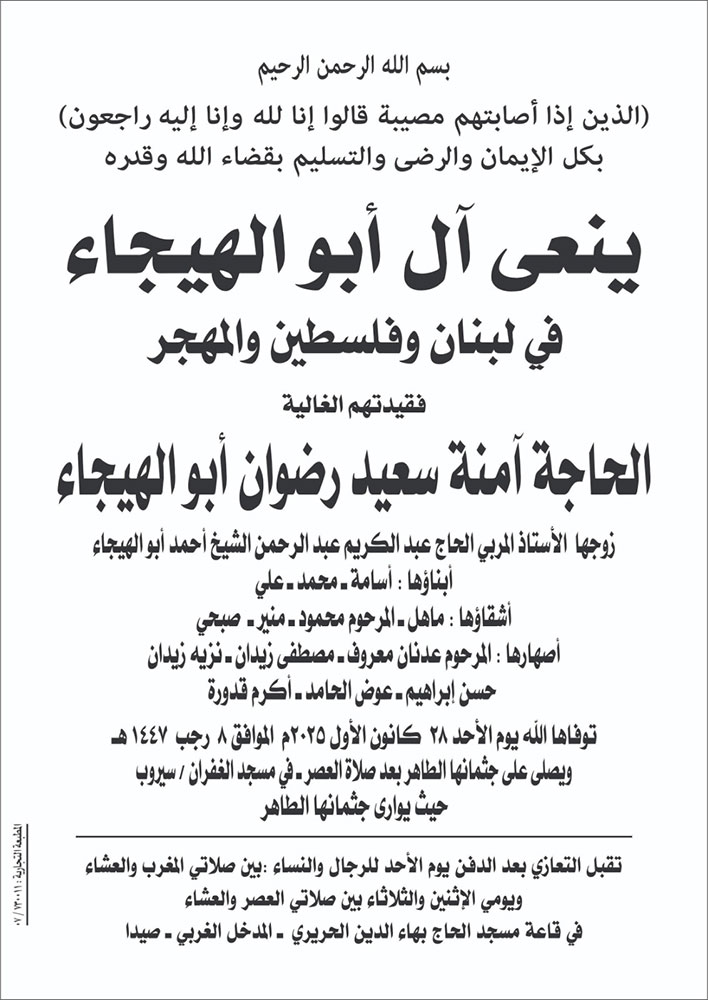 - الأحد 28 كانون أول 2025 - [ عدد المشاهدة: 268 ]