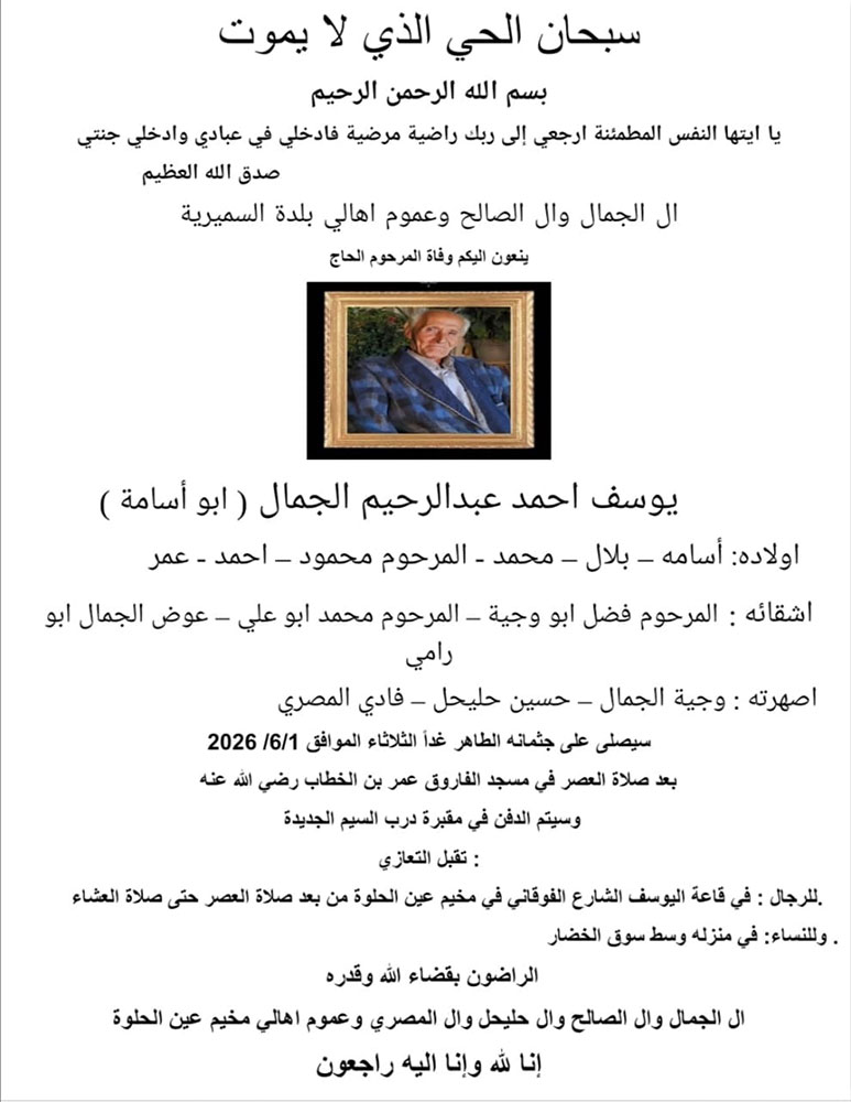 يوسف أحمد عبد الرحيم الجمال (أبو أسامة) في ذمة الله