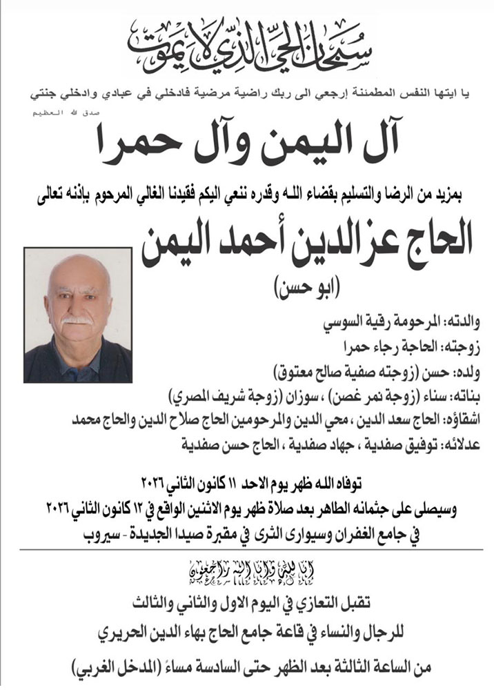 الحاج عز الدين أحمد اليمن (أبو حسن) في ذمة الله