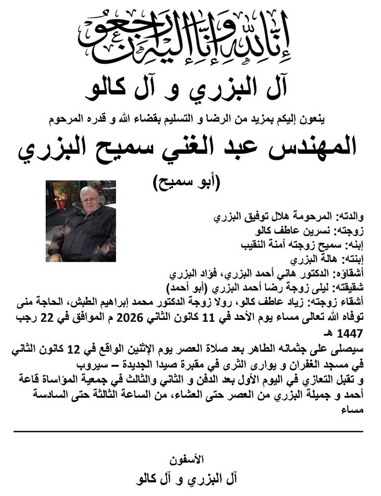 المهندس عبد الغني سميح البزري (أبو سميح) في ذمة الله