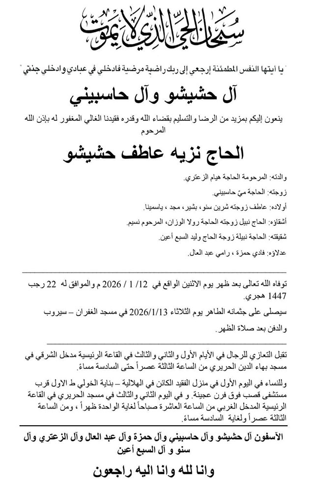 الحاج نزيه عاطف حشيشو في ذمة الله