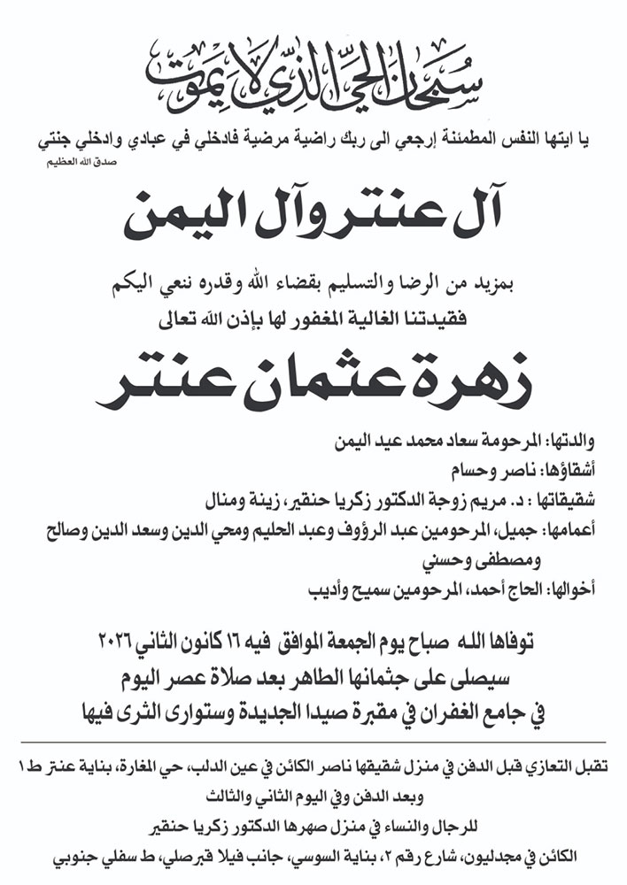 - الجمعة 16 كانون ثاني 2026 - [ عدد المشاهدة: 290 ]