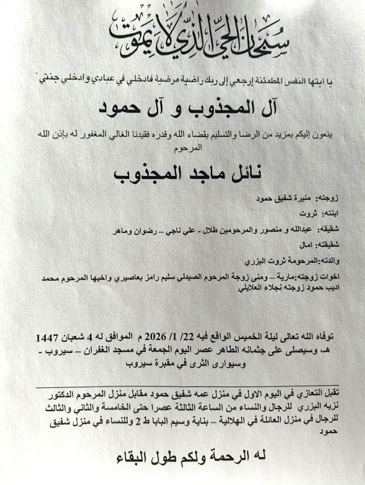 نائل ماجد المجذوب في ذمة الله
