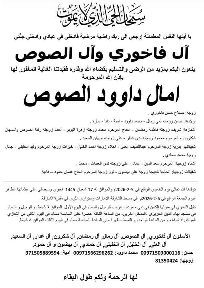- السبت 07 شباط 2026 - [ عدد المشاهدة: 487 ]