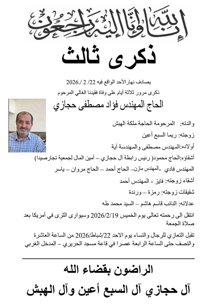 الحاج المهندس فؤاد مصطفى حجازي في ذمة الله