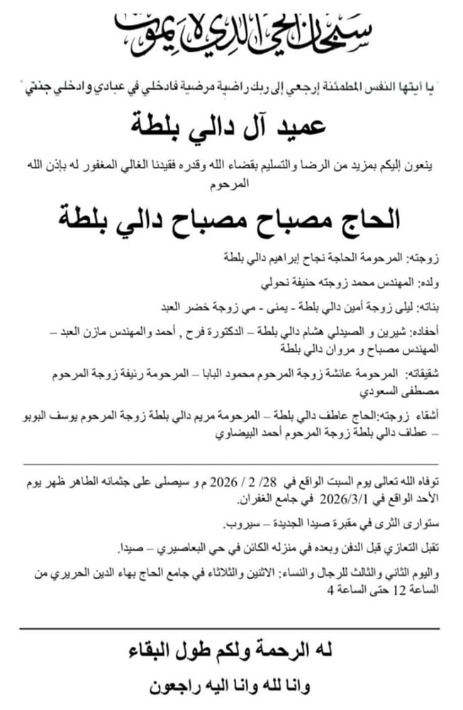 وفيات صيدا والجوار