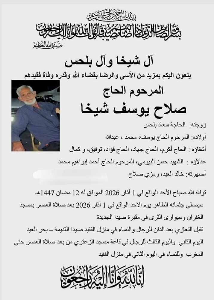 الحاج صلاح يوسف شيخا في ذمة الله