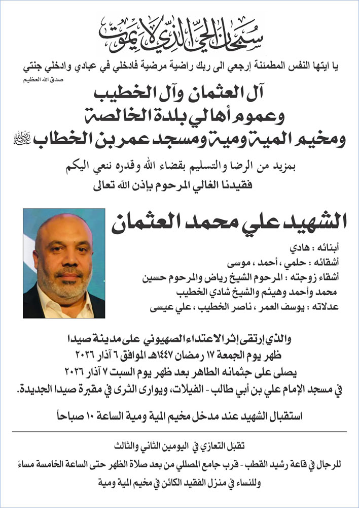 الشهيد علي محمد العثمان في ذمة الله