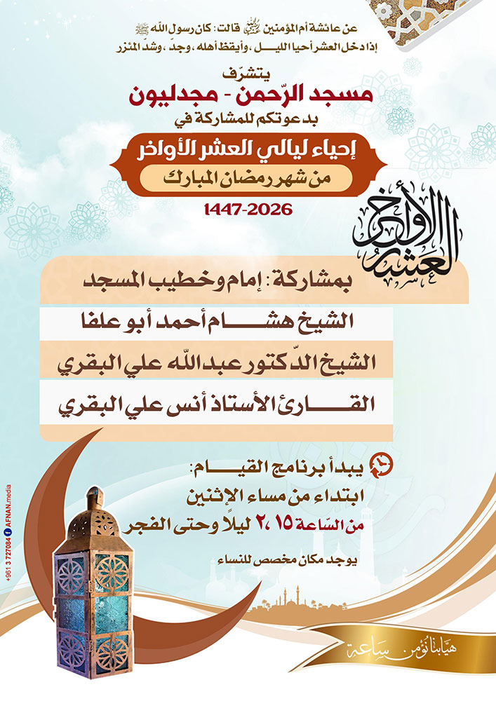 مسجد الرحمن - مجدليون يدعوكم للمشاركة في إحياء العشر الأواخر