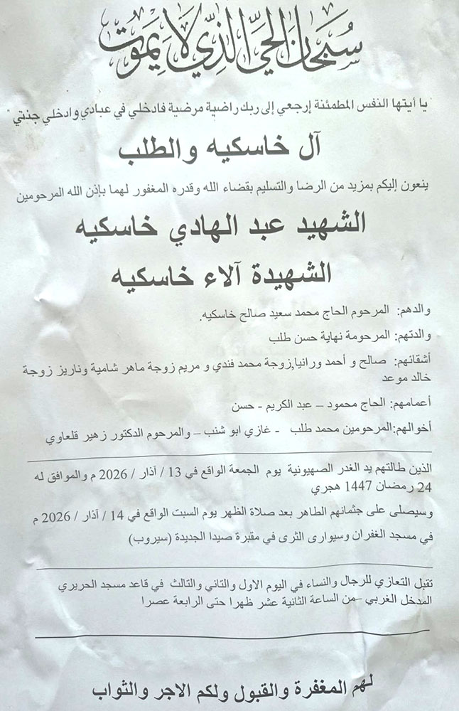 الشهيد عبد الهادي وأخته الشهيدة آلاء خاسكية في ذمة الله