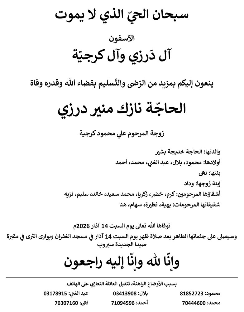 وفيات صيدا والجوار