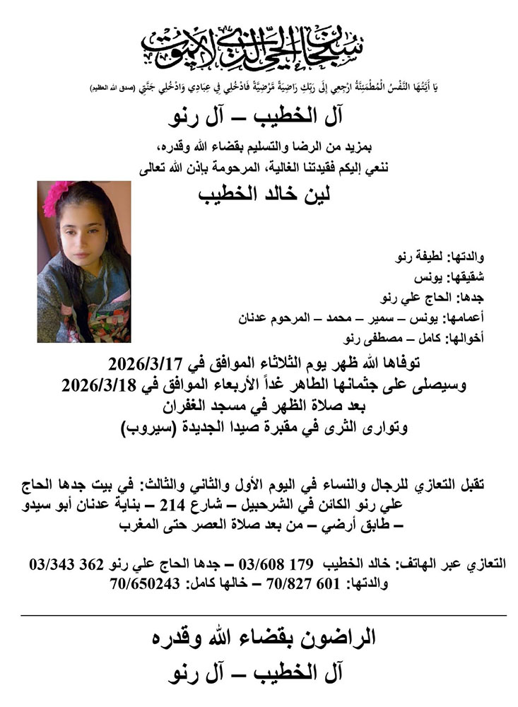 لين خالد الخطيب في ذمة الله