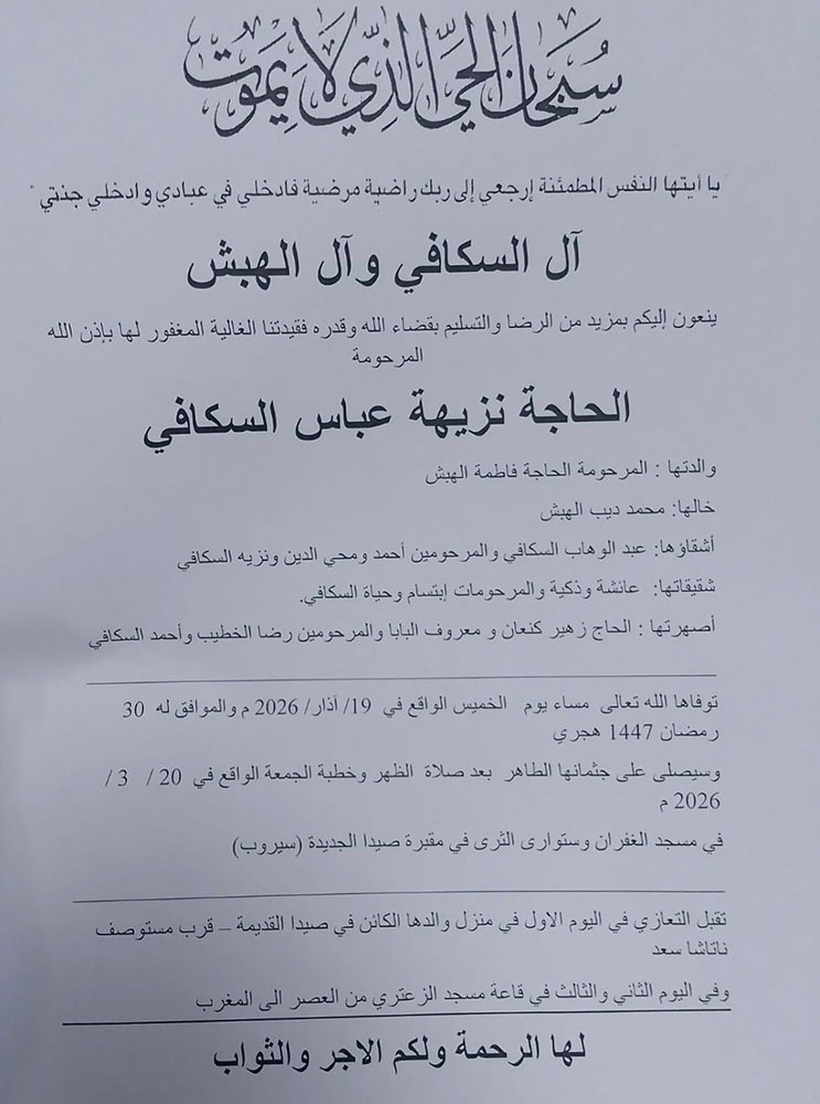 وفيات صيدا والجوار