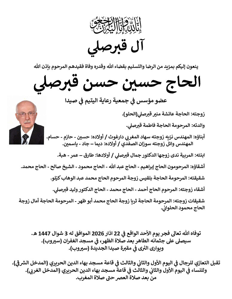- الأحد 22 آذار 2026 - [ عدد المشاهدة: 380 ]
