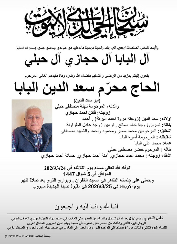 الحاج محرم سعد الدين البابا في ذمة الله