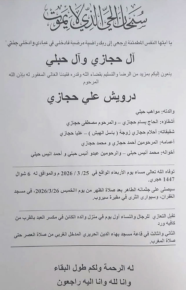 - الأربعاء 25 آذار 2026 - [ عدد المشاهدة: 4696 ]