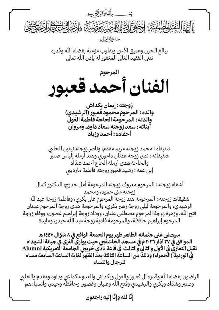 الفنان أحمد قعبور في ذمة الله