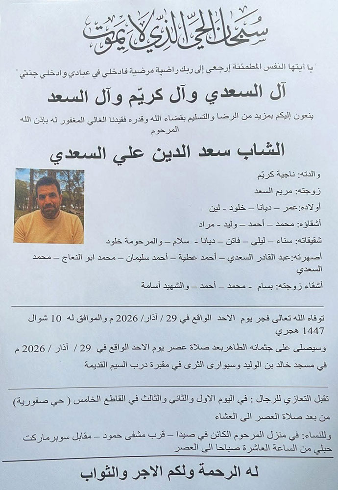 الشاب سعد الدين علي السعدي في ذمة الله