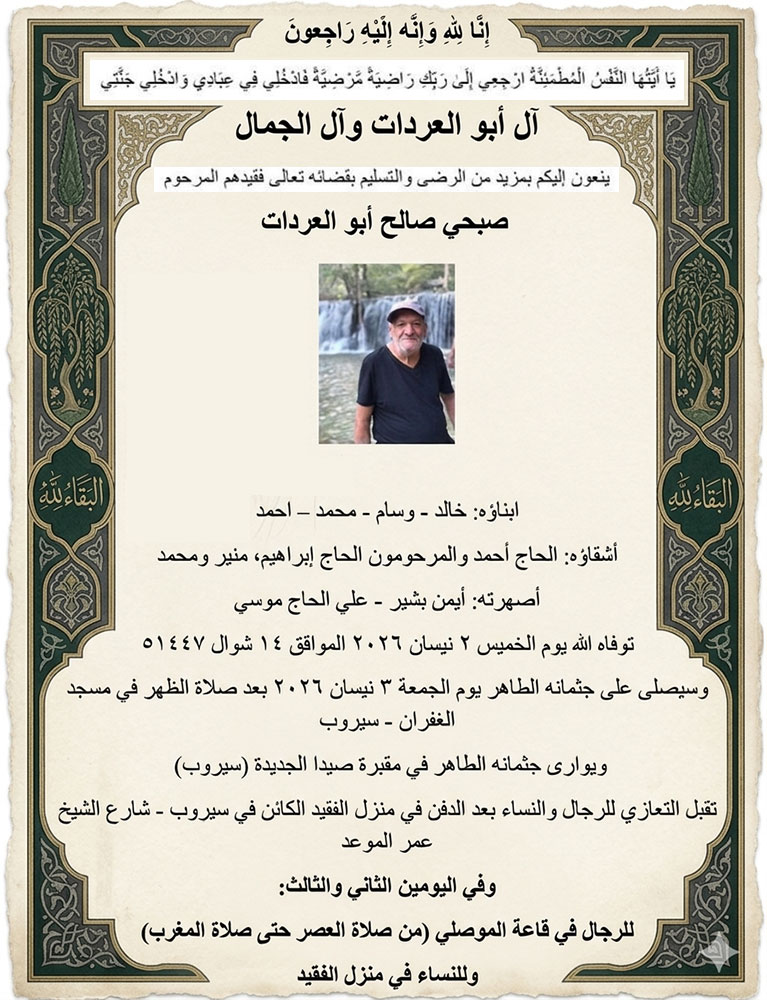 - الخميس 02 نيسان 2026 - [ عدد المشاهدة: 279 ]