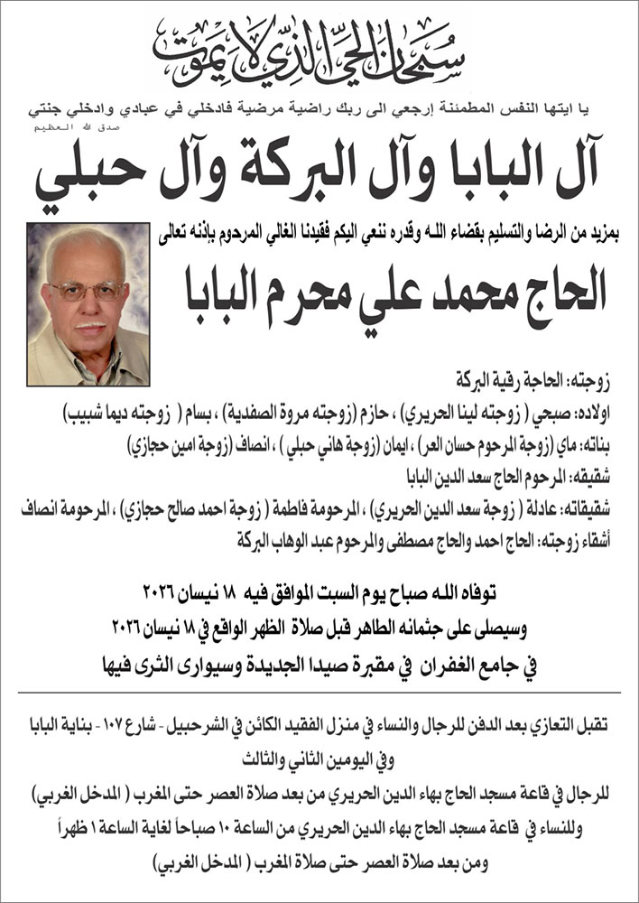 الحاج محمد علي محرم البابا في ذمة الله