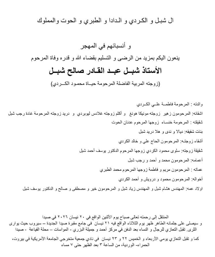 وفيات صيدا والجوار