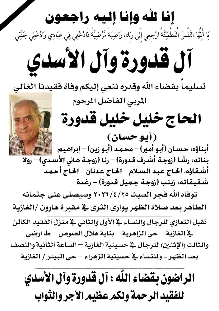 الحاج خليل خليل قدورة (أبو حسان) في ذمة الله