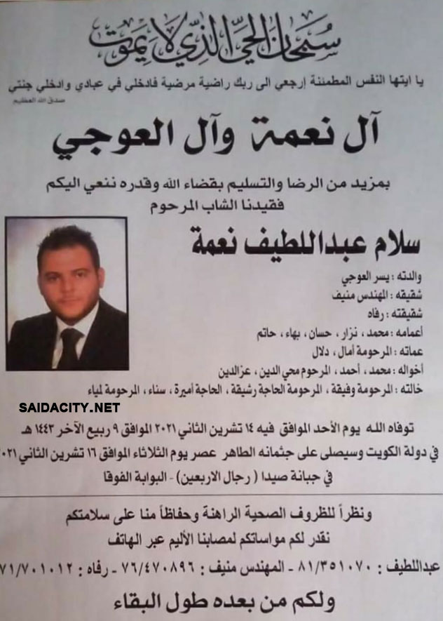 الشاب سلام عبد اللطيف نعمة في ذمة الله