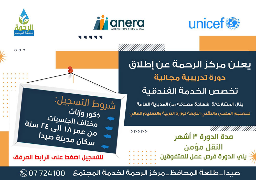 إطلاق دورة تدريبية مجانية تخصص الخدمة الفندقية في صيدا