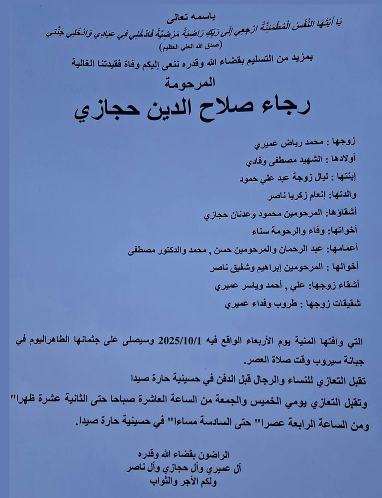 وفيات صيدا والجوار