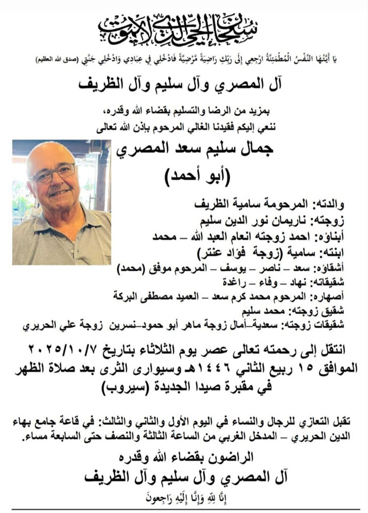 جمال سليم سعد المصري (أبو أحمد) في ذمة الله