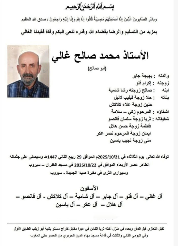 الأستاذ محمد صالح غالي (أبو صالح) في ذمة الله