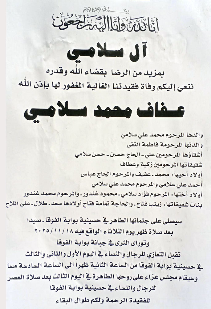 سناء الهبش (زوجة سامي طه) في ذمة الله